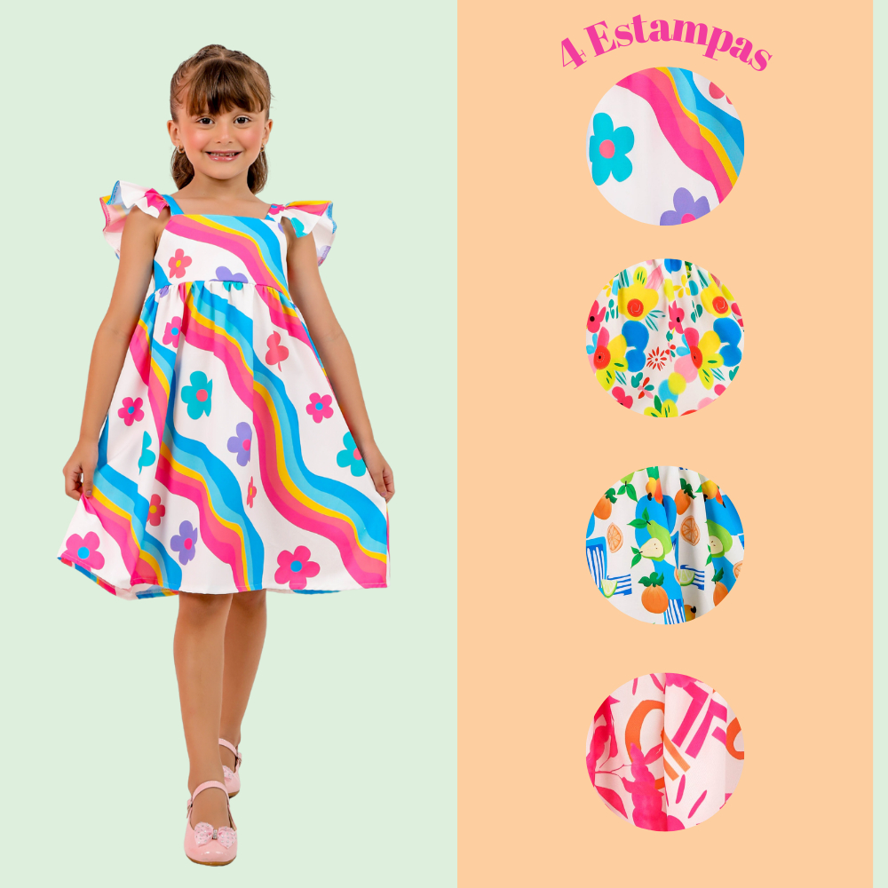 Vestido Infantil Crepe Especial – Estampa Exclusiva | 4 · 6 · 8 · 10 · 12 Anos
