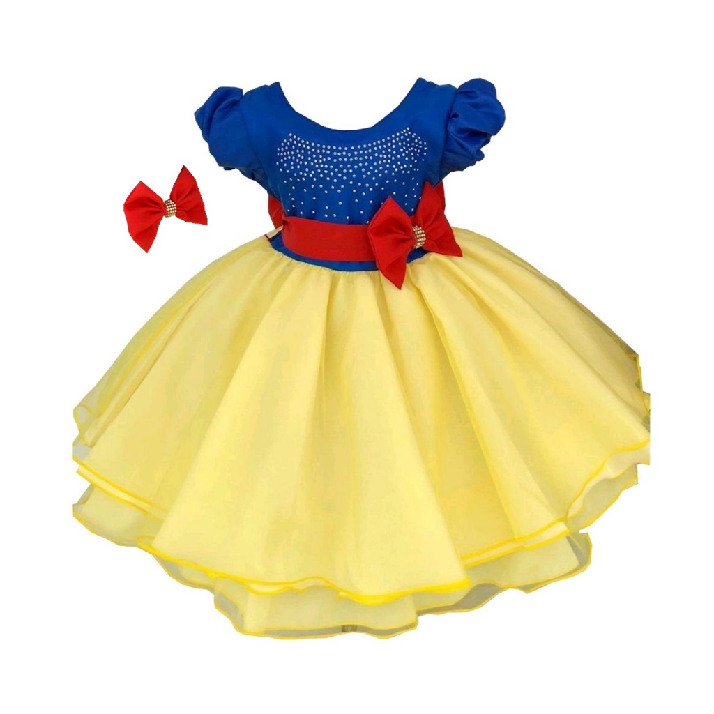 Vestido Infantil Da Branca De Neve Linda Fantasia Festa Luxo