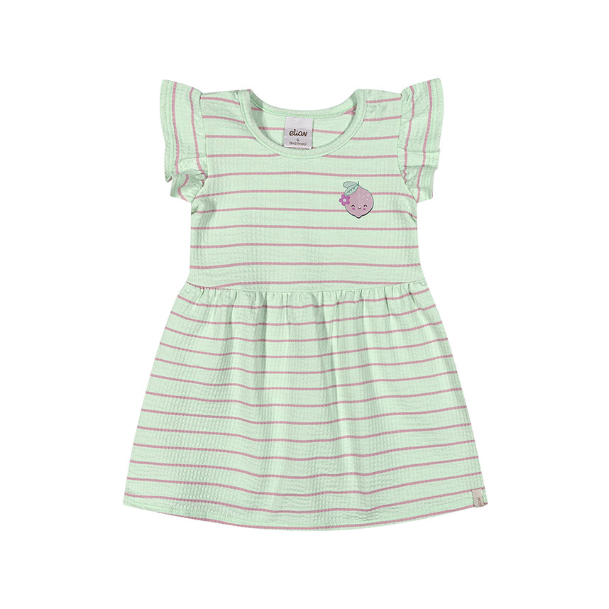 Vestido Infantil Elian Em Malha Canelada Listrada Frutinha
