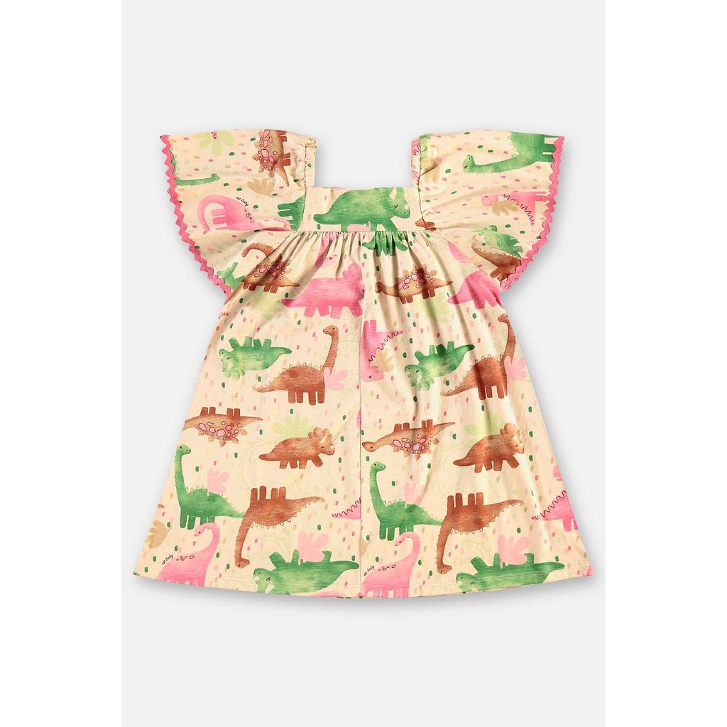 Vestido infantil confeccionado em meia malha linho flamê, conta com recorte com franzido, elástico nos ombros, mangas curtas com franzido e detalhe em sianinha. Além disso, possui estampa de dinossaurinhos, que oferece um visual lúdico e especial à peça.Tecido: Vestido: Meia Malha Linho Flamê (Algodão, Poliéster e Linho)Composição: 67% Algodão e 28% Poliéster e 5% LinhoModelagem: AmplaModelo: EvasêComprimento Mangas: CurtaComprimento: CurtoForro: NãoCintura: AltaDecote/Gola: Quadrado