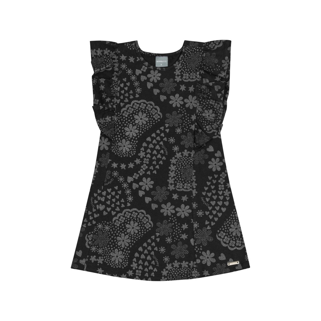 Vestido infantil para menina, confeccionado em cotton com glitter. O design inclui mangas com babados, adicionando um toque de graça ao visual. A estampa deslumbrante com flores, corações e estrelas em glitter confere ao vestido um visual mágico e encantador.Tecido: CottonComposição: 96% Algodão 4% ElastanoModelagem: JustaComprimento Manga: CurtaModelo Manga: Com babadosComprimento: CurtoForro: NãoDecote/Gola: Redondo