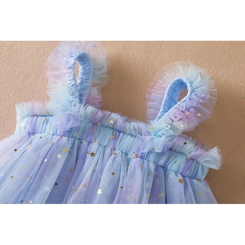 Vestido infantil estrelinhas estrelas tule aniversário ensaio fotográfico frozen