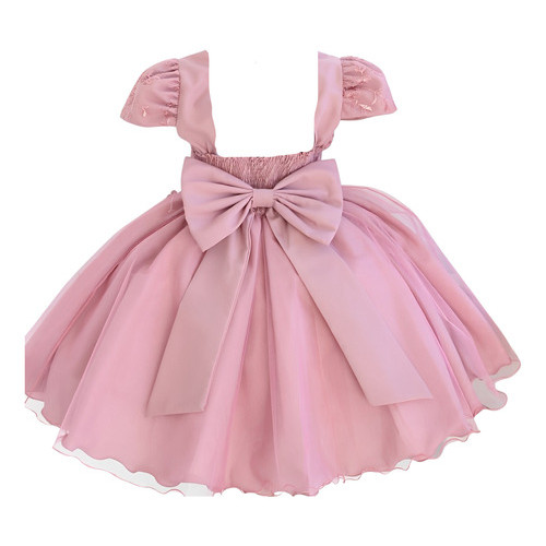 Vestido Infantil Festa Luxo Menina Borboleta Rosa Liso Tiara