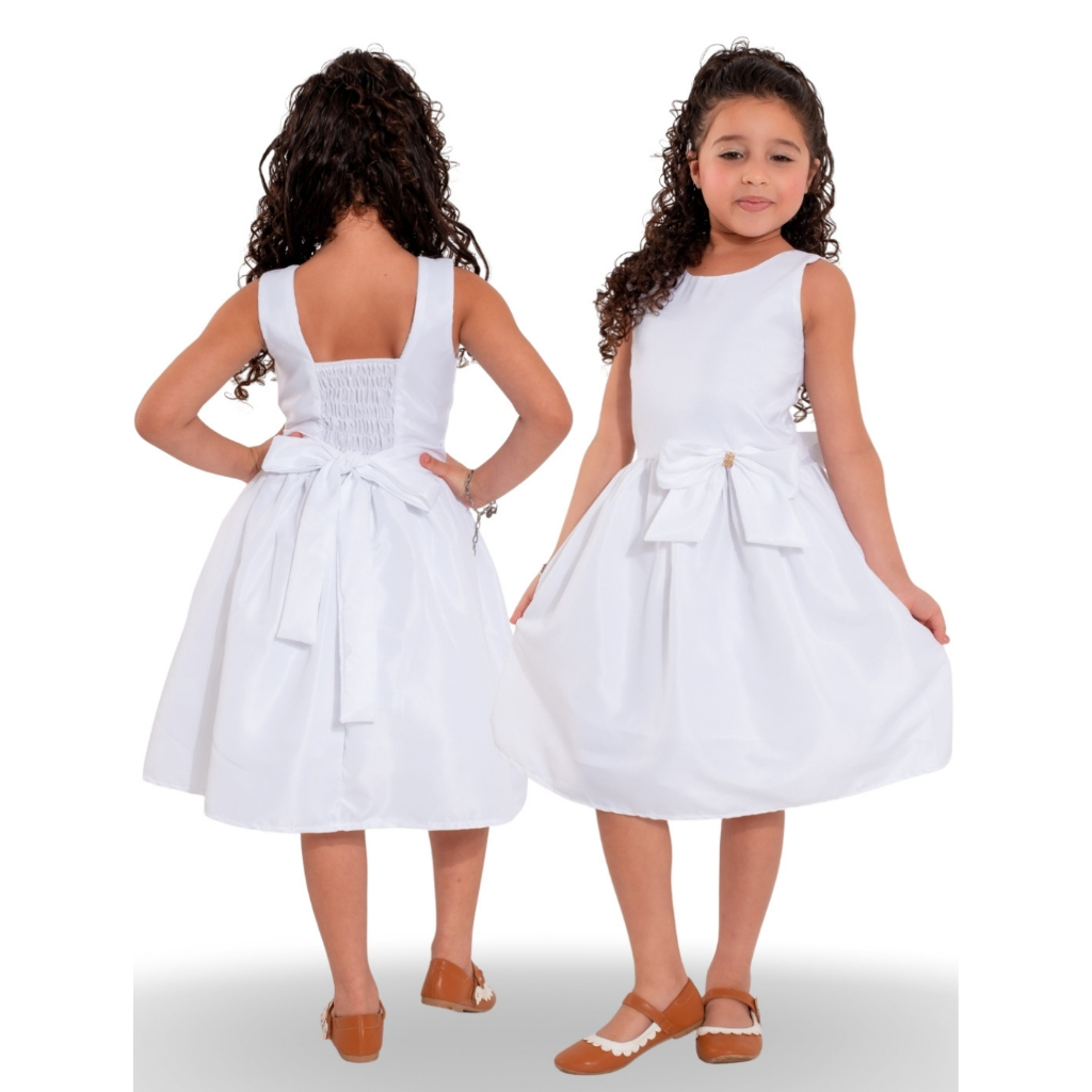 vestido infantil festa menina branco com manga ou regata rodado luxo liso social