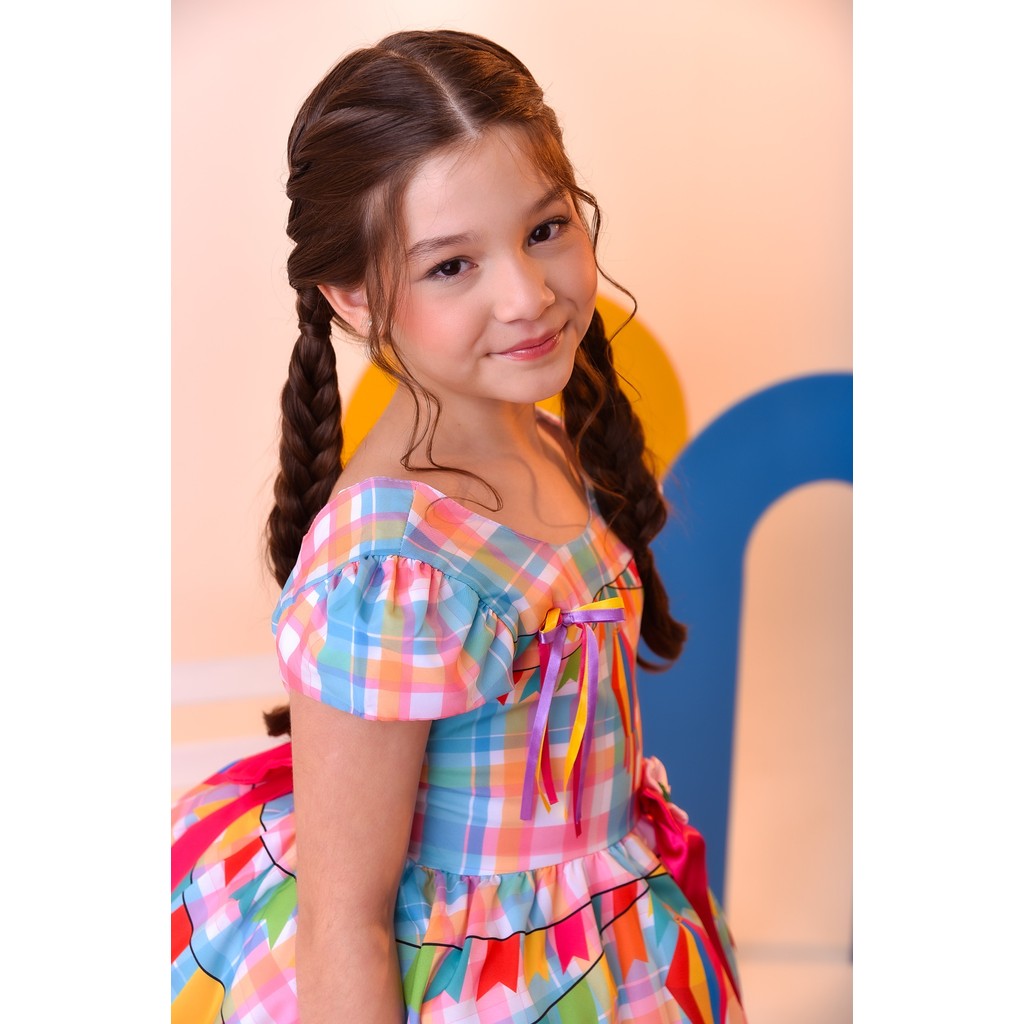 Vestido Infantil Junino Luxo Xadrez Colorido Festa São João