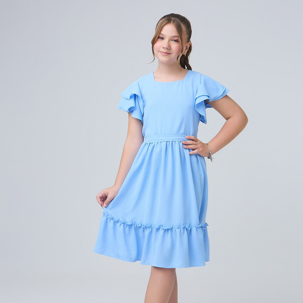 Vestido Infantil Juvenil de Menina Delicado Midi Liso Passeio Blogueirinha