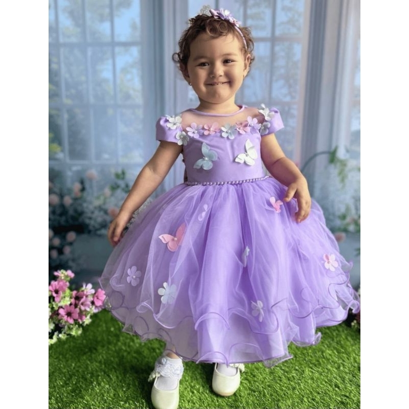 Vestido infantil luxo , jardim encantado com apliques de borboletas e flores . tamanhos 1, 2, 3 e 4 anos cores: Rosa bebê, lilás