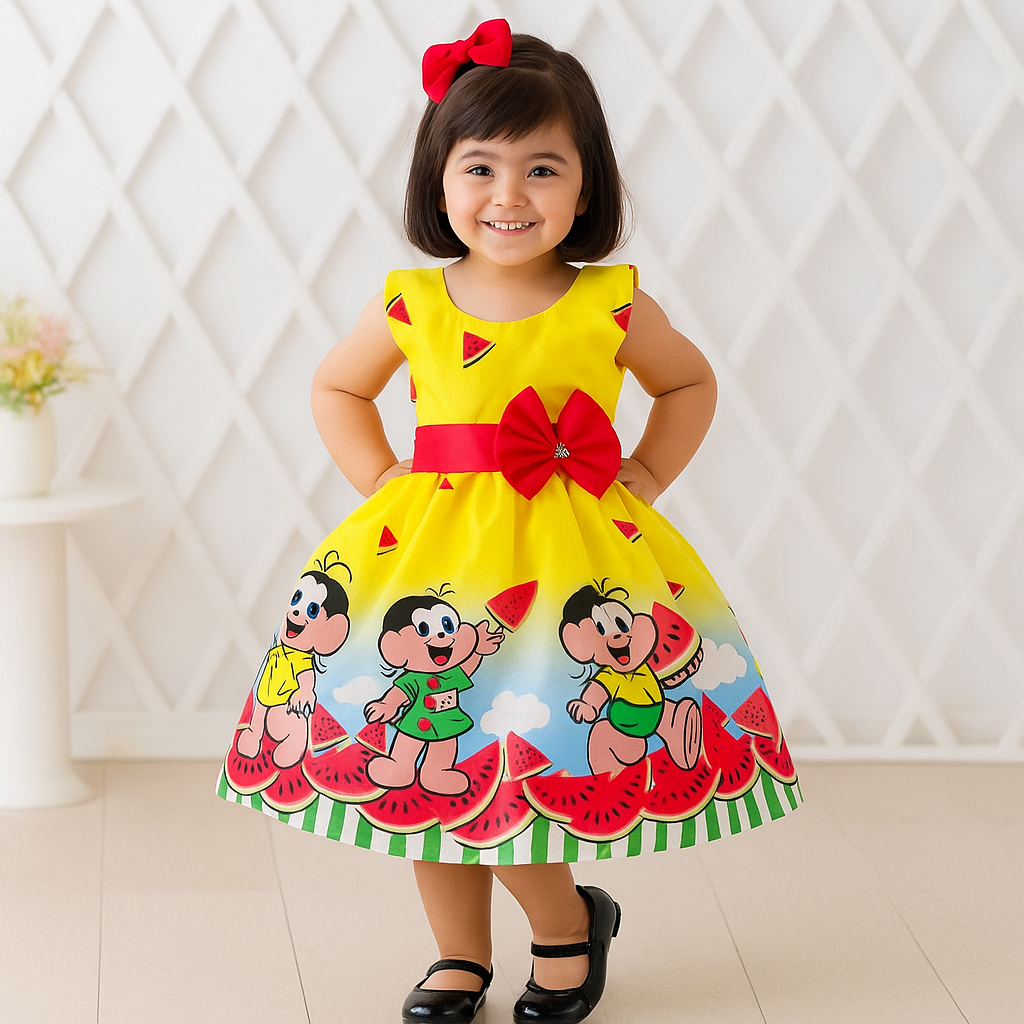 Vestido Infantil Magali Temático Menina Festa Melancia Amarelo