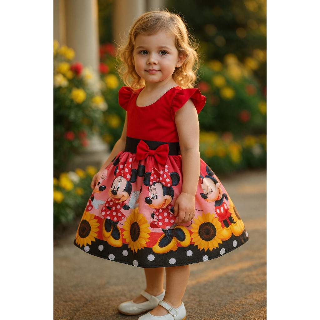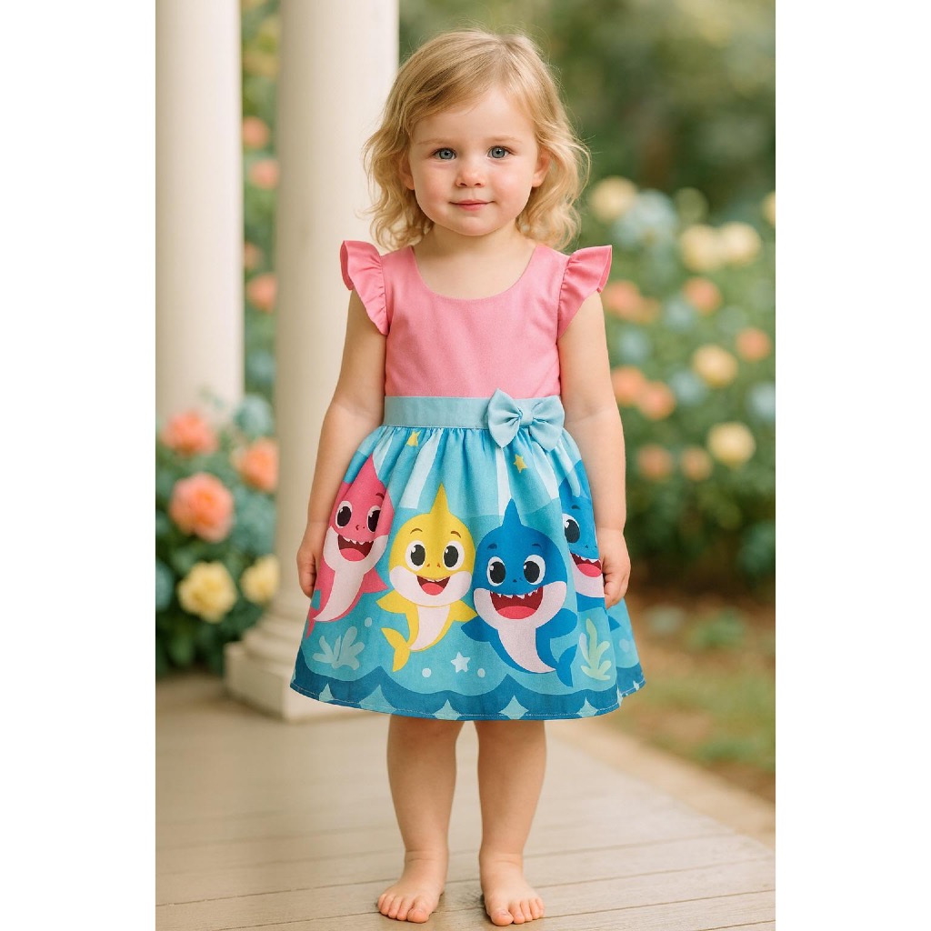 Vestido Infantil Menina Baby Shark |Minnie, Masha, Moana, Galinha Pintadinha, Vaquinha (1, 2 e 3 anos)