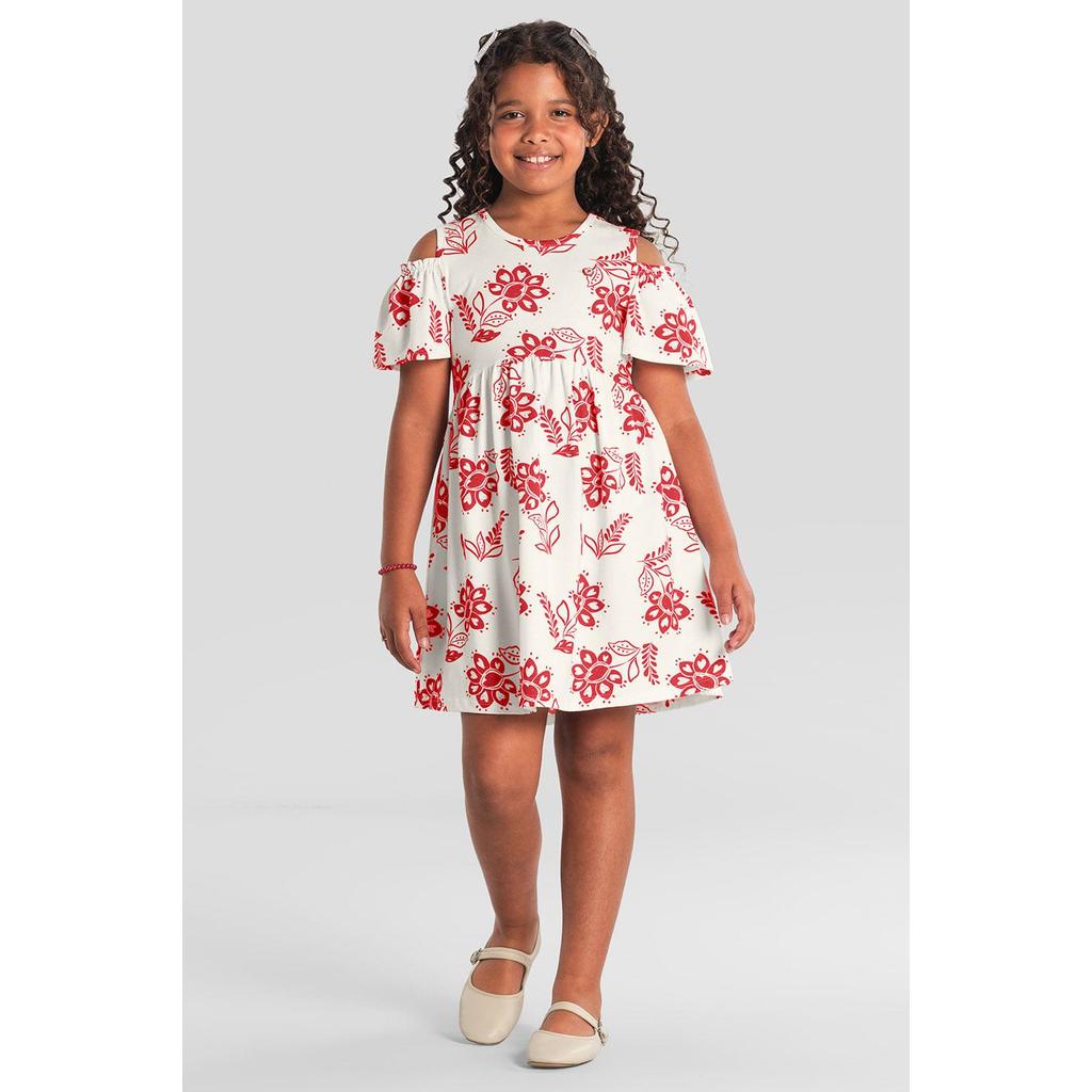 Vestido infantil menina com flores Brandili -Vermelho