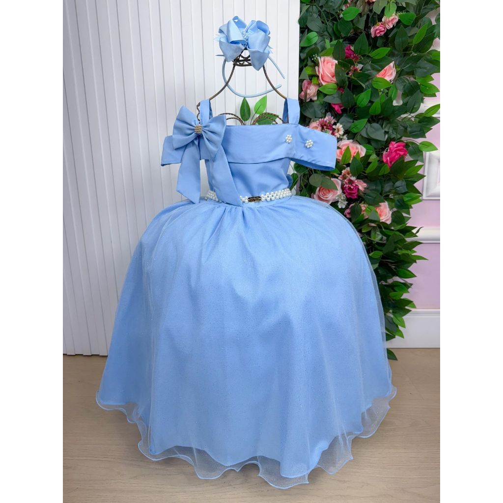 Vestido Infantil Menina Daminha Casamento Formatura Longo Azul Bebe