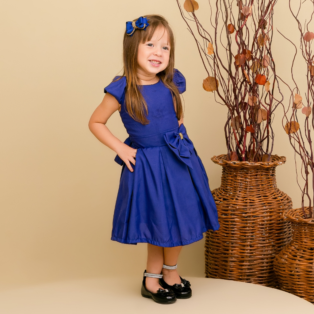 vestido infantil menina festa cor azul royal rodado básico