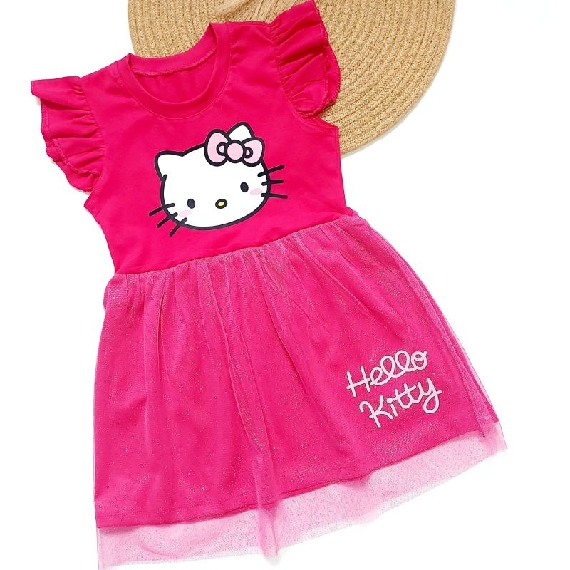 Vestido infantil Menina Hello kitty. Encante sua pequena com este lindo vestido. ✅️ Tecido leve e confortável, ideal para dias quente. ✅️ Estampa exclusiva da Hello Kitty que as crianças Amam. ✅️ Modelagem soltinha para liberdade nos movimentos. ✅️ Perfeito para Passeios, Festas ou até para presentear! 📏 Disponivel nos Tamanhos: 2,4,6,8,10. 🎨 Cores : Rosa bb, Pink. Garanta já o seu Vestido, Entrega rápida.🚚 Tecido 100% algodão, estampa na parte da Frontal, com tule de brilho na parte da saia que dá todo charme na peça. Ideal para o Verão. Como medir a criança? ● Utilizando uma fita métrica, envolva as regiões a serem medidas. Busto: Enrole a fita métrica em torno do corpo, na linha do peito da criança Comprimento: Comece pelo topo do ombro e meça até chegar no comprimento desejado Quando for calça, short ou saia, comece medindo na linha da cintura. Cintura: Enrole a fita métrica em torno da cintura, sem apertar . As medidas da tabela abaixo são referentes á parte frontal da peça, então o Busto e a cintura você deve multiplicar por 2. Cuidados Básicos: - Não usar alvejante; - Não deixar de molho; - Não secar na secadora; Obs: A cor do produto nas fotos pode sofrer alteração, em decorrência do uso do flash Tabela: Tamanho (2): Comprimento : 53 Largura: 27 Tamanho (4): Comprimento: 57 Largura : 29 Tamanho (6): Comprimento : 62 Largura: 30 Tamanho (8): Comprimento : 65 Largura : 32 Tamanho (10) Comprimento: 70 Largura: 34