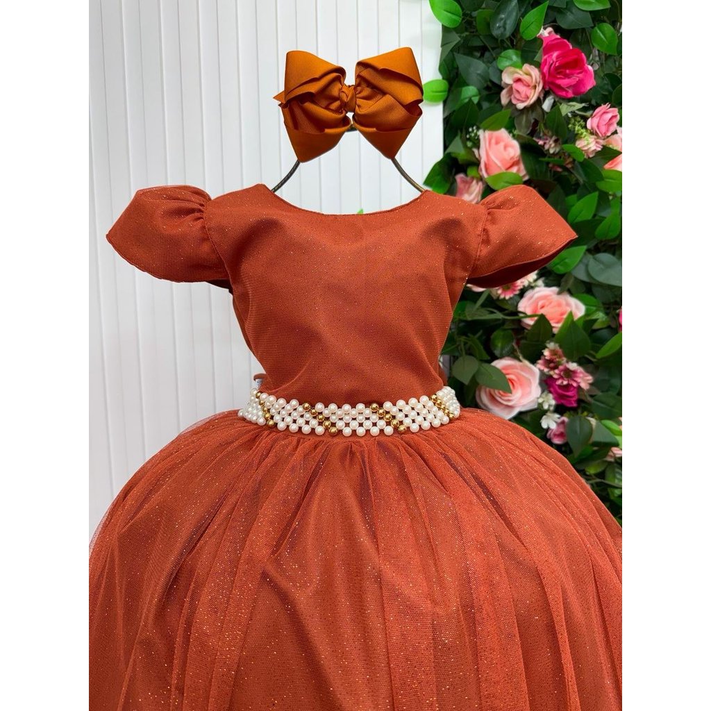 Vestido Infantil Menina Heloisa Longo Terracota Festa Casamentos Aniversários Formatura Daminha Luxo
