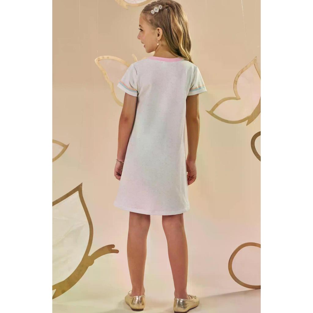 O vestido em molecotton, é um look delicado e cheio de charme, perfeito para as meninas que amam estilo e conforto em uma peça só! Disponível em uma cor super estilosa - bege - ele oferece um toque super macio e confortável, ideal para diversas ocasiões. A sublimação divertida e o strass, adicionam um charme especial à peça. Composição: VESTIDO : 96% POLIÉSTER, 4% ELASTANO Referência: 86960