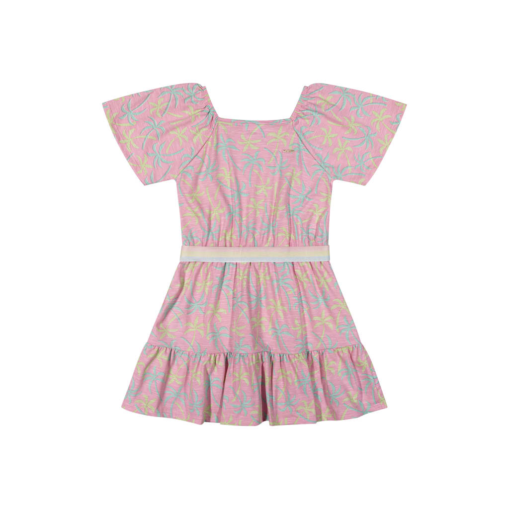 Vestido Infantil Menina Tropical Malha Flamê Elian Rosa