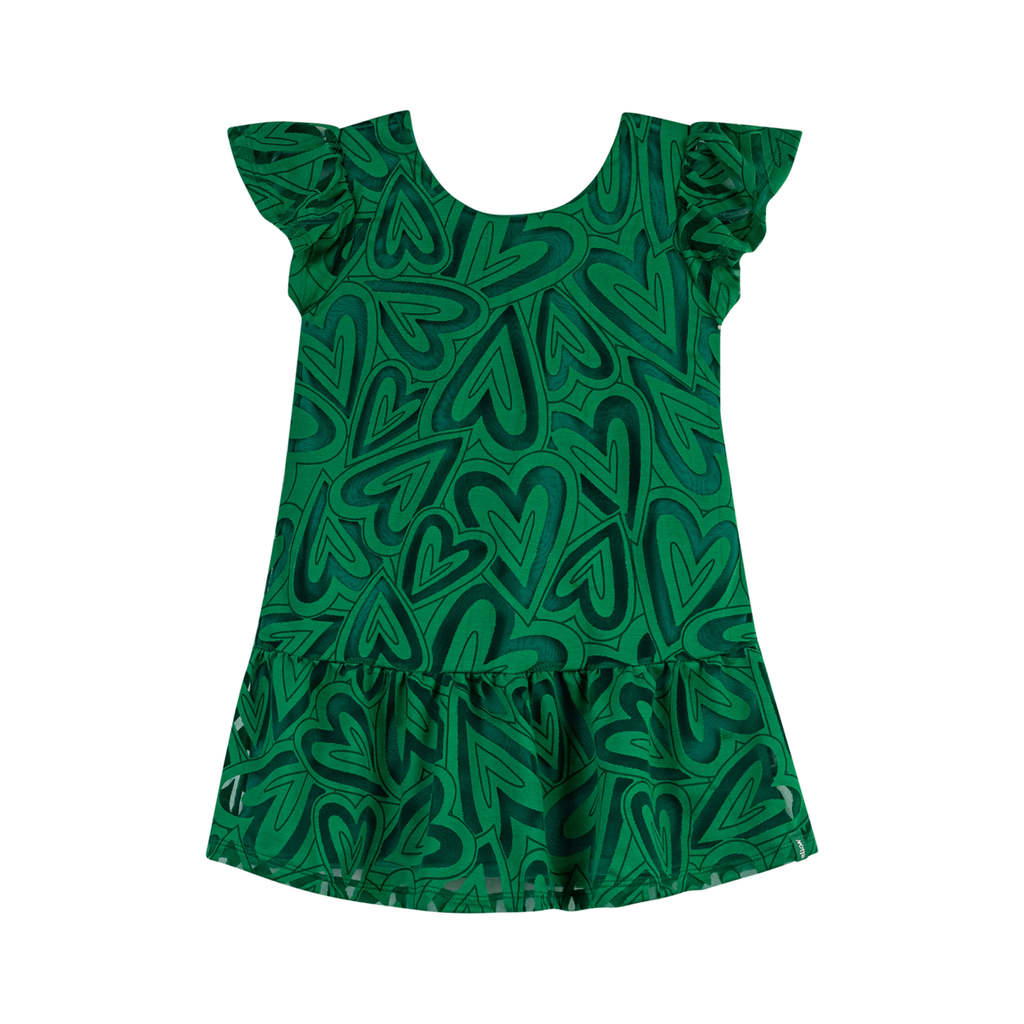 Vestido Infantil Menina Tule Corações Elian Verde