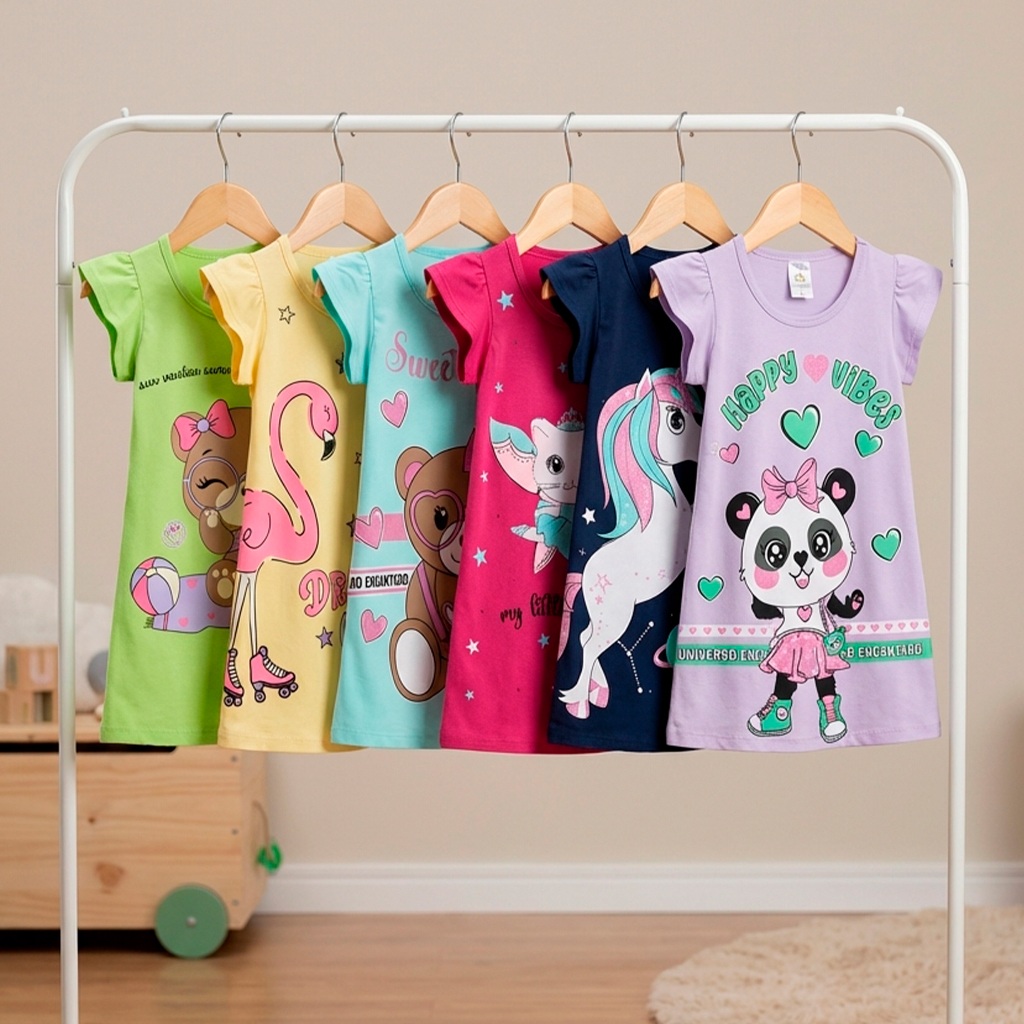 Conforto, leveza e estilo para o dia a dia das meninas Feitos em malha 100% algodão, os vestidos são leves, macios e respiráveis — perfeitos para os dias mais quentes e para acompanhar as meninas em todas as ocasiões. Detalhes do Produto -Composição: 100% algodão – tecido natural, leve e confortável -Modelagem soltinha, garantindo liberdade de movimentos -Estampas variadas e alegres -Ideal para o verão, passeios e uso diário -Envio sortido, sempre com variedade de cores e estampas Tabela de Medidas – Vestido Infantil -Tam 2 – Busto 24 cm | Comprimento 47 cm -Tam 3 – Busto 26 cm | Comprimento 49 cm -Tam 4 – Busto 28 cm | Comprimento 51 cm -Tam 6 – Busto 29 cm | Comprimento 53 cm -Tam 8 – Busto 31 cm | Comprimento 57 cm -Tam 10 – Busto 34 cm | Comprimento 59 cm Pode haver variação de até 2 cm conforme o processo de confecção. 💡 Dica: Adicione mais de um kit ao carrinho e aproveite o mesmo frete para montar um guarda-roupa completo para sua pequena!
