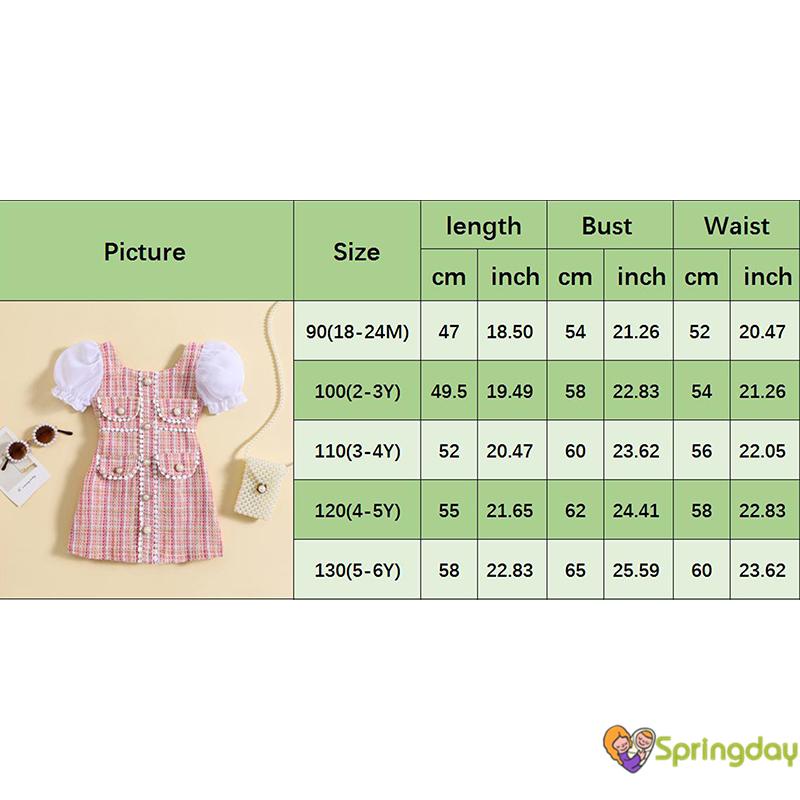 Vestido Infantil para Meninas Manga Bufante Cores Mistas Pérolas Patchwork Vestido de Verão Linha A,0-6 Anos