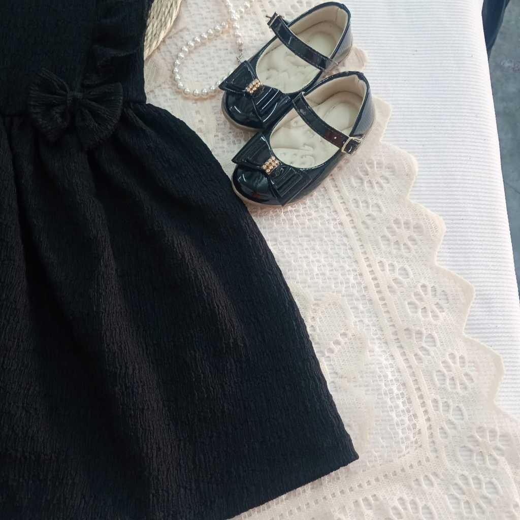 👶🎀 Vestido Infantil Preto Menina Bebê Criança Infantil + Laços Cabelo Veste do 1 ao 4 Anos Passeio aniversários