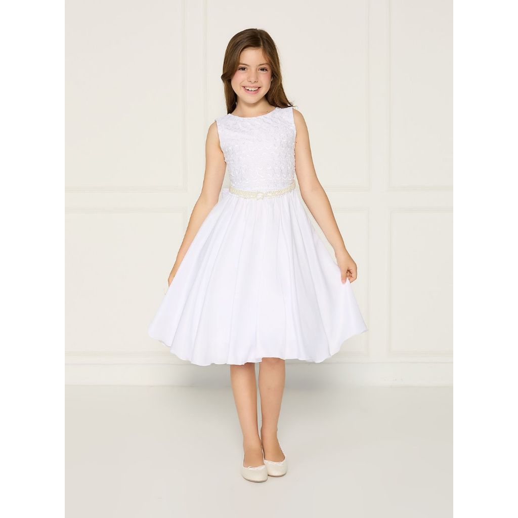 Vestido Infantil Renda Laise Regata Cinto Pérola Branco Luxo