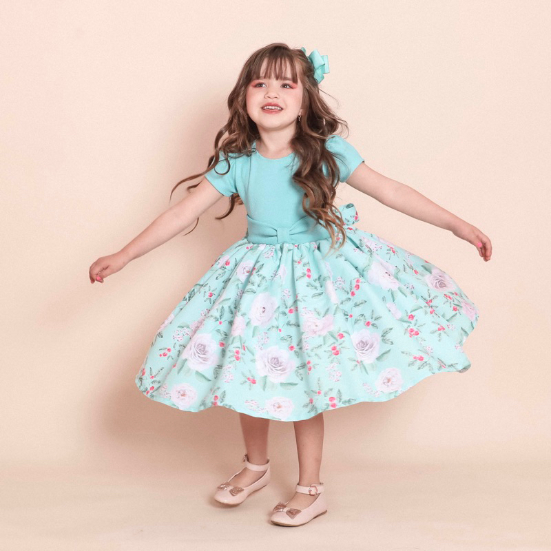 vestido infantil rodado de festa aniversário de luxo princesa estampado