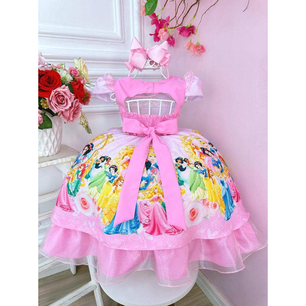 Vestido Infantil Rosa Princesas C/ Cinto Pérolas