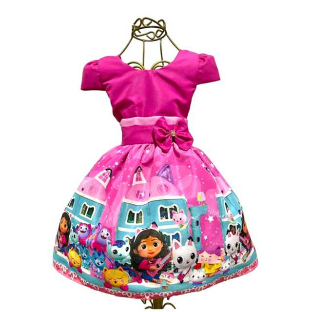 Vestido Infantil Temático Casa da Gabi Aniversários e Festas.