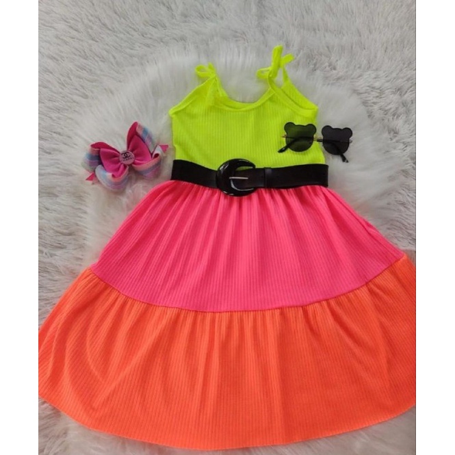 Vestido em Malha Canelada 03 Marias - Cores Neon Bem levinho e ótimo para o verão. Temos nos tamanhos do 02 ao 16 - MEDIDA E FORMA PADRÃO Aviso: Todos os vestidos tem 3 cores, a sequencia das cores pode variar com as da foto, OU SEJA, SÃO ALEATÓRIAS E OS TONS AS VEZES VARIAM DE ACORDO COM LOTE DO TECIDO QUE VEM DA CONFECÇÃO! ATENÇÃO: O ANÚNCIO É SOMENTE O VESTIDO!!! BOLSAS, LAÇOS E OUTROS ACESSÓRIOS NÃO ESTÃO INCLUÍDOS E SÓ ESTÃO NAS FOTOS COMO DEMONSTRAÇÃO DE COMPOSIÇÃO!!! -------------------------------- ATENÇÃO!!! AVISO A TODOS OS COMPRADORES!!! Ao receber o seu pedido, não esqueça de fazer o vídeo da abertura do pacote contando as peças ou produtos, sem edição ou corte. Não serão aceitas reclamações sem vídeo!!!