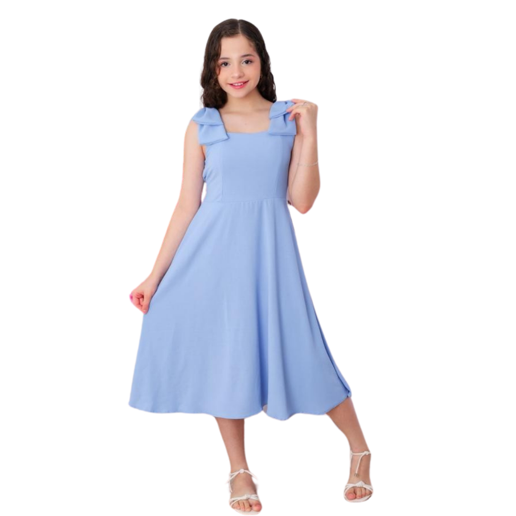 Vestido Infanto Juvenil Feminino Laço Midi Longo Premium