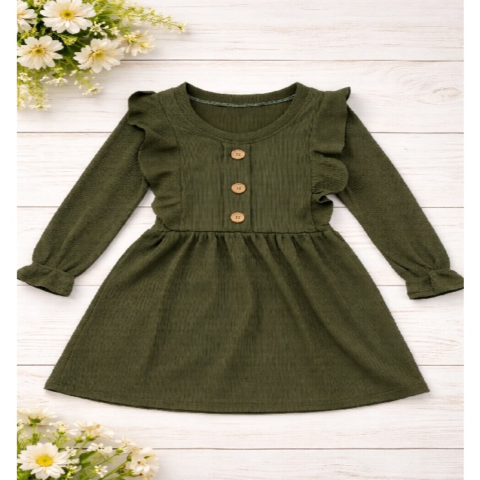 Vestido Inverno Infantil e Juvenil Lanzinha Canelada com Detalhes de Botão Vestido Midi Teen Frufru (VINF432)