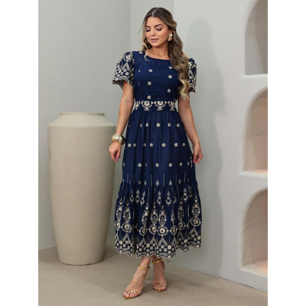 🌸 Vestido Barlo Lese Bordado Manga Bufante Princesa 🌸 O vestido perfeito para realçar sua delicadeza e elegância em qualquer ocasião! Confeccionado em lese bordado 100% algodão, este modelo combina charme, conforto e sofisticação em uma peça única. Com elastex nas costas para ajuste impecável e forro interno que garante segurança e caimento perfeito, o vestido é ideal para aproveitar as estações mais esperadas do ano. A manga bufante estilo princesa traz um toque romântico e atemporal, deixando seu look ainda mais especial. ✨ Aposte neste vestido e esteja pronta para arrasar em festas, encontros, passeios ou eventos ao ar livre. Com ele, você desperta olhares por onde passar! ✅ Diferenciais do produto: Lese bordado em algodão de alta qualidade Forrado para maior conforto e elegância Ajuste perfeito com elastex nas costas Não amassa com facilidade Manga bufante princesa que valoriza o look Fotos reais do produto 📏 Tamanho único (veste do 38 ao 46) Ombro: 1,10 cm Busto: 90 a 100 cm Cintura: 80 a 90 cm Quadril: até 120 cm Comprimento: 126 cm 💎 Acabamento Premium | Envio rápido em até 24h | Pronta entrega