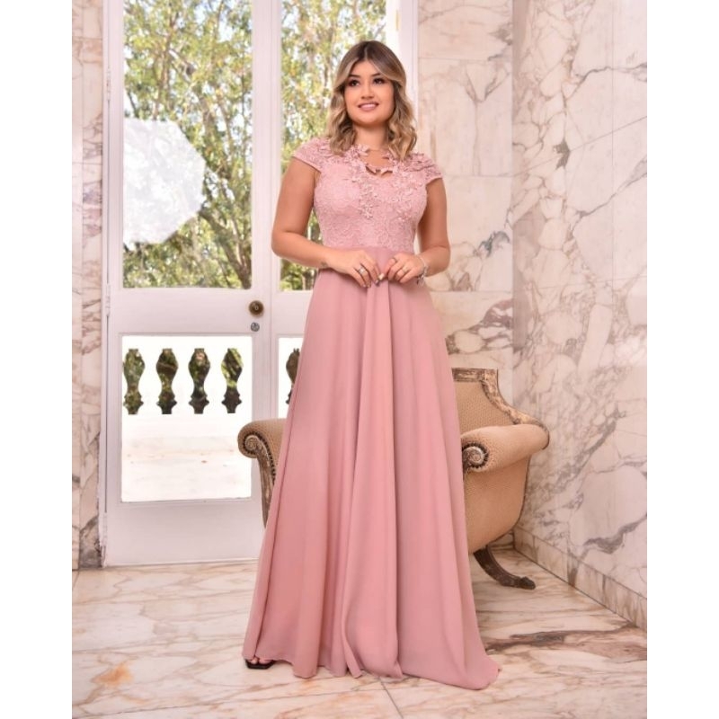Vestido lindo de renda, bordado, para Eventos especiais, madrinhas, casamentos, aniversário, igreja, Evangélica.
