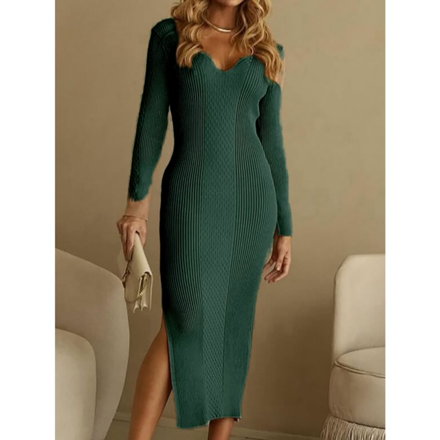 vestido linha tricot modal manga longa basica longa
