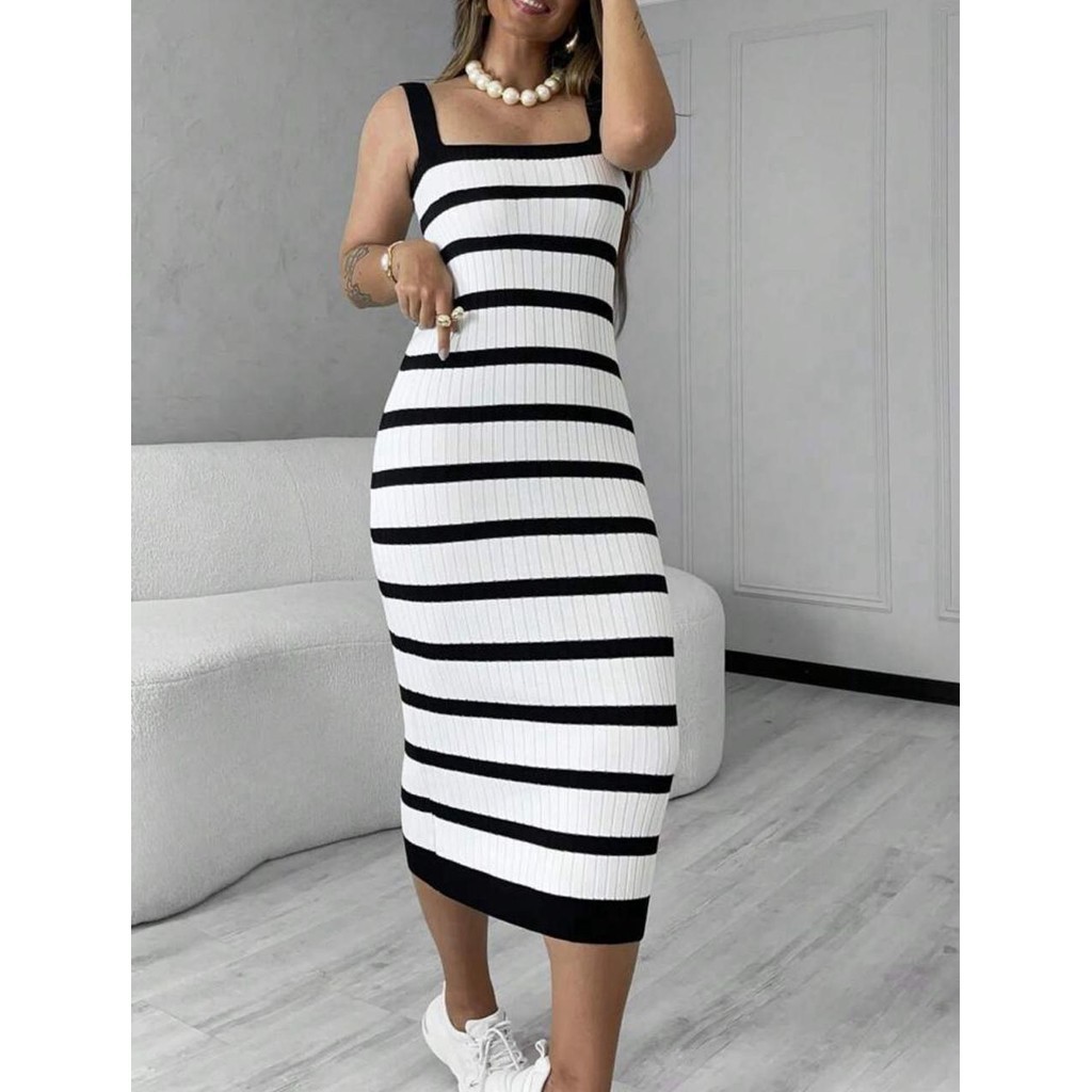 Vestido Listrado Com Alça Trico Modal Longo Feminino