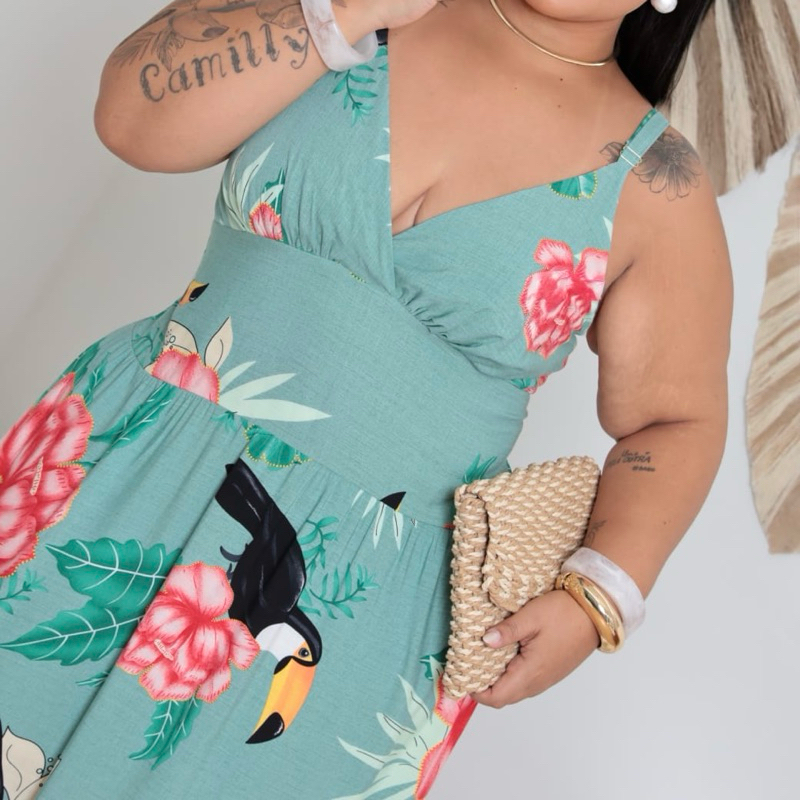 Vestido de alça regulável. Com elastex nas costas. Forrado. Alça regulável. Estampas selecionadas. Inspiração farm. Nos tecidos viscolinho e duna (dentro de cada foto está escrito qual tecido é cada estampa). Nossos tecidos não mancham e não dão bolinha. Tamanho único: veste 50 ao 54. Medidas Busto: veste até 128 cm Cintura veste até 126 cm Quadril: 160 cm Comprimento: 158 cm a partir do ombro (podendo variar alguns cms pois a alça é regulável) *Você tem até 7 dias após o recebimento do produto para solicitar reembolso e devolução se não gostar ou mudar de ideia. Ficou alguma dúvida? teremos o maior prazer em falar com você no nosso chat :)