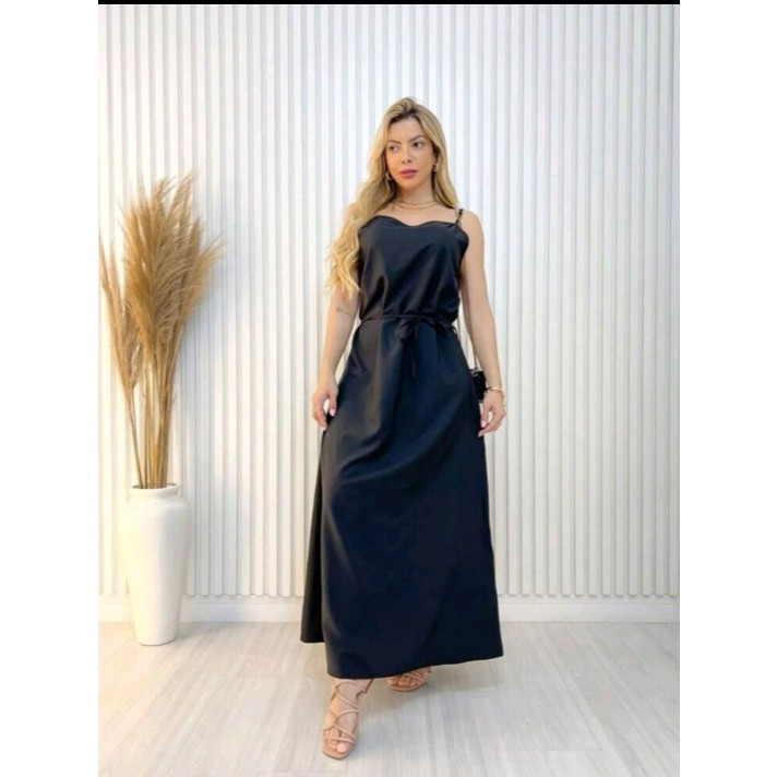 vestido longo alcinha crepinho vasico
