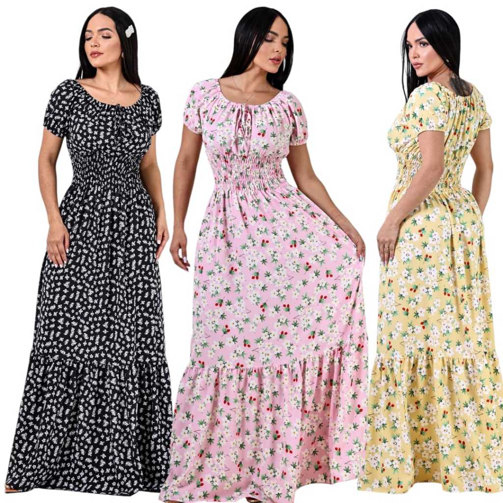 | Vestido Longo Ciganinha CREPINHO Casual Manga curta Tendência Moda ... este produto | R$ 58,92 | 16% | 4.9/5 | 248 |
