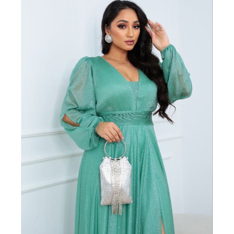 Vestido Longo Com brilhos manga longa madrinhas formaturas festas casamento Evangélica Aniversário