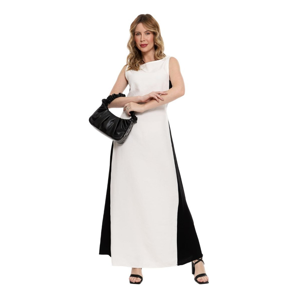 Vestido Longo Com Nesga Lateral Black White