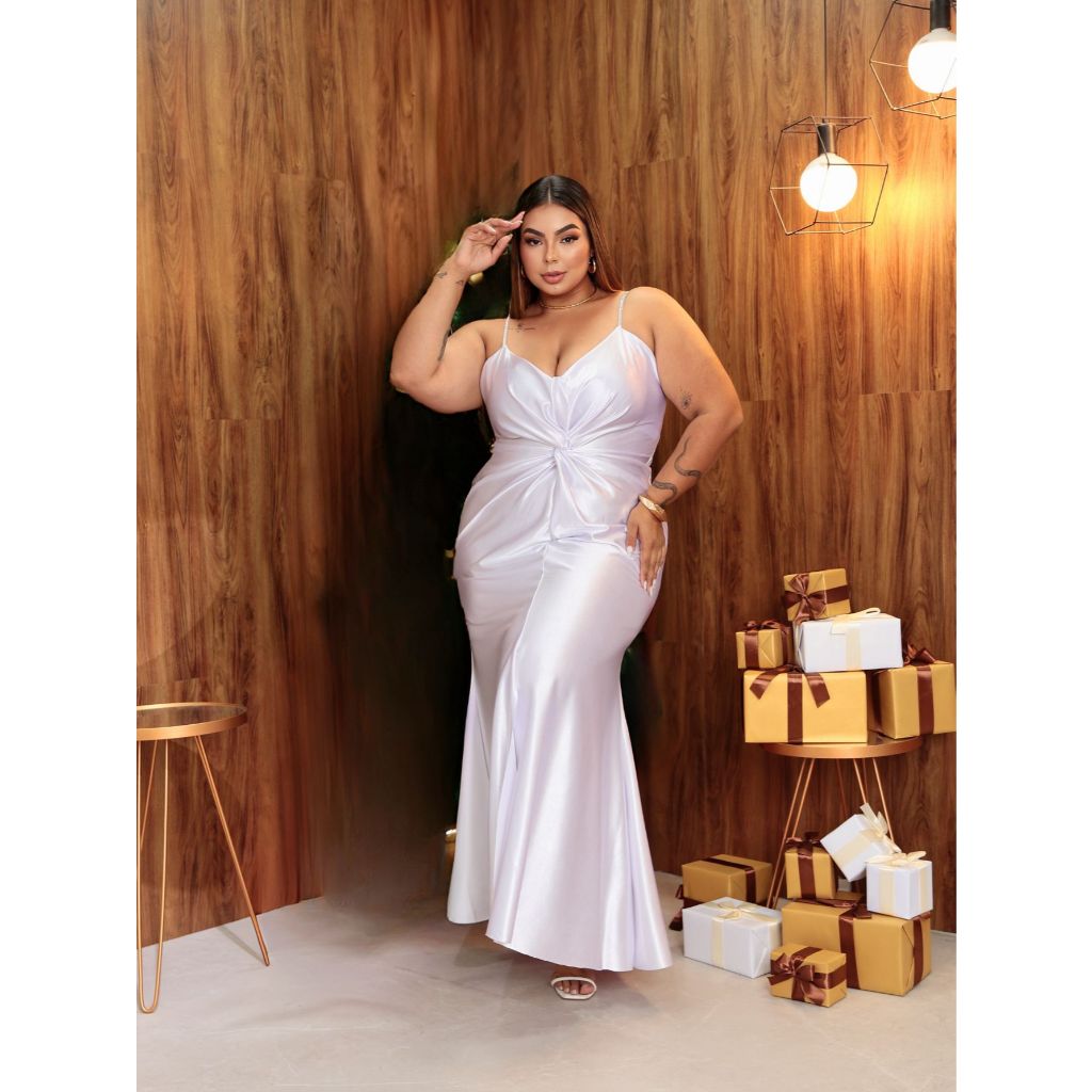 Vestido Lívia: Sofisticação e Glamour em Cada Detalhe Material de Alta Qualidade: Confeccionado em malha prada, um tecido com brilho cintilante que garante um visual luxuoso e elegante. Design Elegante: Gola em V: Decote que valoriza o colo de maneira sofisticada. Detalhe de Nó: Charmoso nó logo abaixo do busto, que destaca a silhueta e confere um toque moderno. Fenda Frontal: Fenda que vai até abaixo do joelho, trazendo sensualidade e liberdade de movimento. Alça com Strass: Um toque de brilho adicional, ideal para festas e ocasiões especiais. Versatilidade de Tamanhos: Disponível do G ao G3, oferecendo um ajuste perfeito para diversas silhuetas. Por que Escolher o Vestido Lívia? Conforto e Estilo: Malha encorpada com elasticidade que proporciona caimento perfeito. Visual de Impacto: Ideal para festas, jantares ou eventos que pedem elegância e destaque. Cuidados com a Peça: Lavar à mão ou em ciclo delicado na máquina. Secar à sombra. Passar em temperatura baixa, se necessário. Eleve sua produção com o Vestido Lívia e encante em qualquer ocasião!