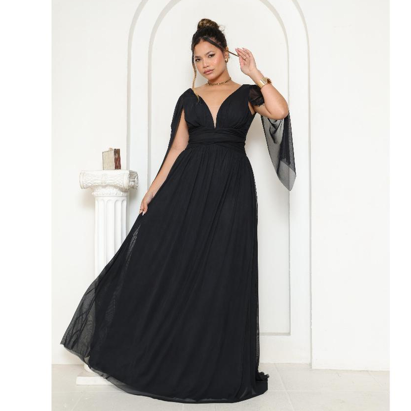 Vestido Longo Elegante Decote V Tule - Madrinha, Festa, Casamento