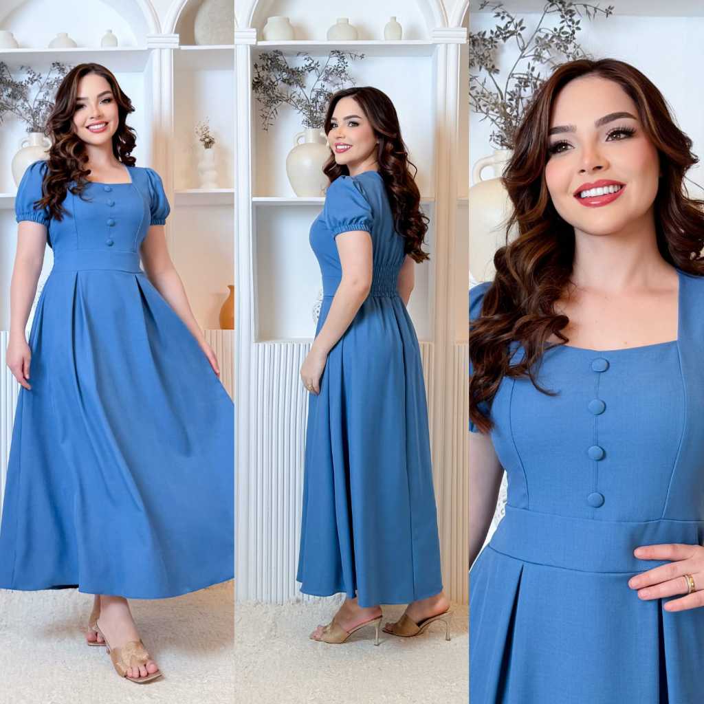 Vestido longo midi com manga princesa, confeccionado em alfaiataria luis twill 90% poliester 10%de elastano tecido que nao amasa. Possui elastex nas costas, forrado, detalhes no busto botões encapados frontais. Modelagem ideal para quem busca um look mais ousado e casual que permiti conforto ao caminhar. MEDIDAS M(40-42) Busto:85cm Cintura:70cm Comprimento:134 G(42-44) Busto: 86cm Cintura:72cm Comprimento:138cm As cores do produto podem sofrer alterações devido à iluminação e os flashes da câmera