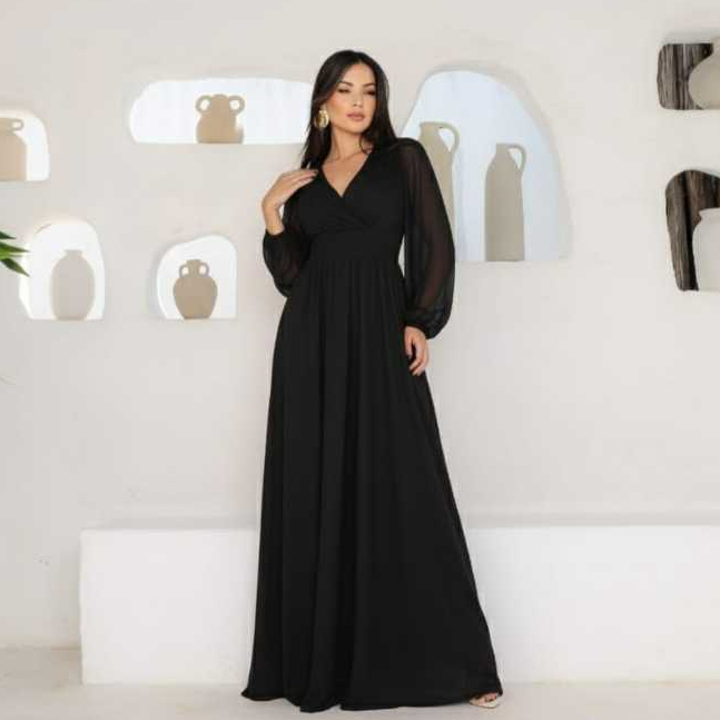 ✨ VESTIDO LONGO ELEGANTE FEMININO ✨ ✔ Ideal para festas, casamentos, madrinhas, formaturas e jantares sofisticados. ✔ Modelo elegante com manga longa transparente, perfeito para convidadas e damas de honra. ✔ Confeccionado em Tule malha leve e fluído, com caimento impecável. ✔ Tamanho único (M) – veste bem no corpo, realçando a cintura. 📏 Medidas aproximadas (Tamanho Único M) Busto: 86–96 cm Cintura: 70–80 cm Quadril: livre Comprimento: 140 cm 💡 DICA: Combine com salto alto e acessórios dourados ou prateados para um look deslumbrante. 📦 Envio rápido 🚚 | Qualidade garantida | Mais de 500 clientes satisfeitas 💕