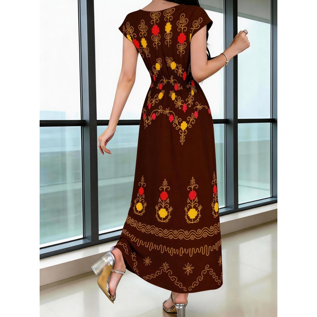 | Vestido Longo Floral De Cintura Franzida Com Decote Em V, Elegante ... este produto | R$ 88,00 | 56% | 4.5/5 | 5 |