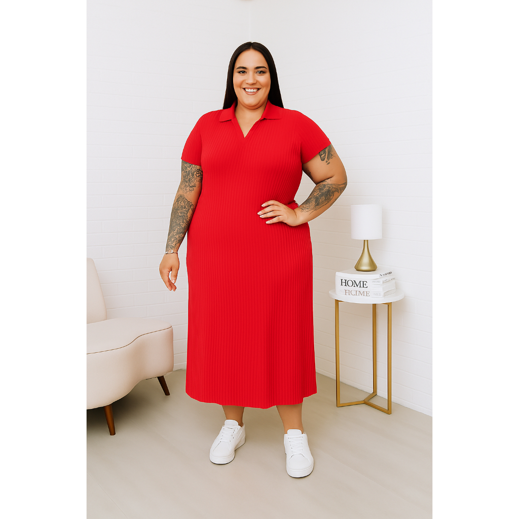 Vestido Longo Gola Polo Plus Size | Elegância e Conforto até o G2