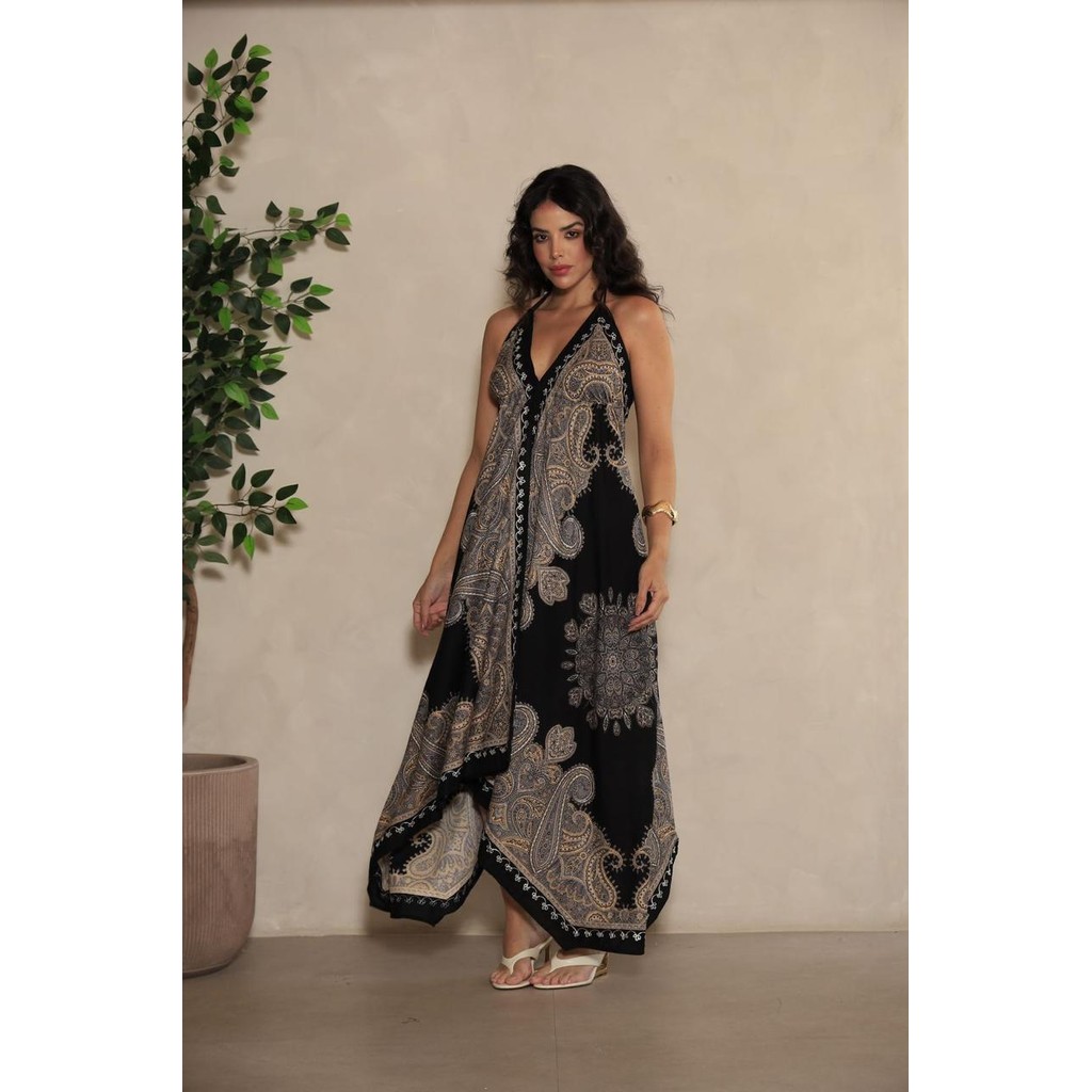 Vestido Longo Indiano Estampado – Elegância e Estilo Boho BORDADO