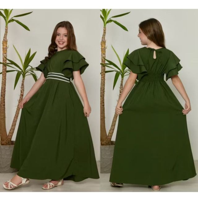 Vestido Longo Infantil Juvenil Mangas Morcego Moda Infantil