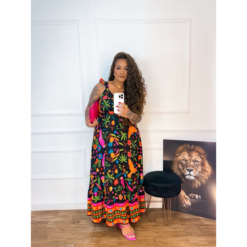 Vestido Longo inspiração em estampas tropicais ,plus size