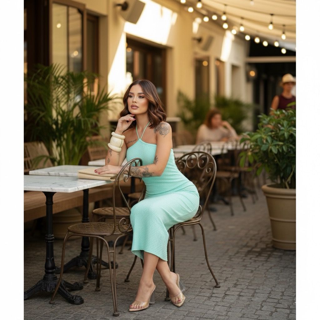 Vestido Longo Juliana Tricô Modal Amarração No Pescoço